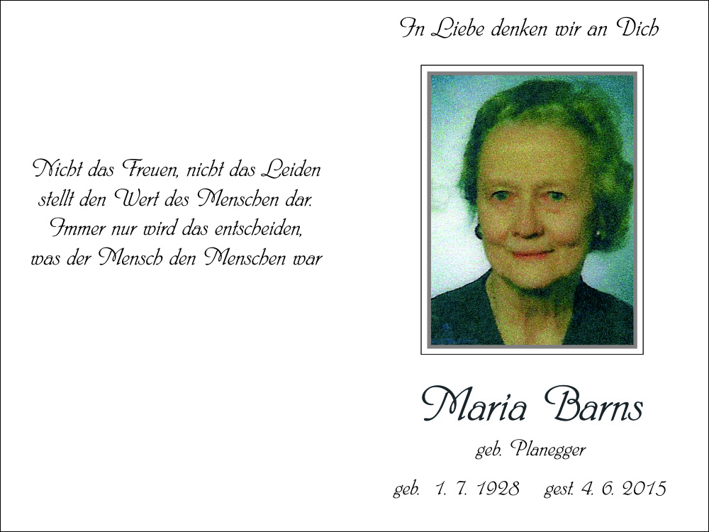 Barns Maria geb. Planegger † 04.06.2015 « zurück