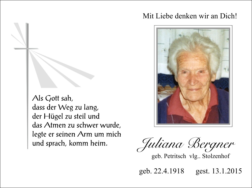 Bergner Juliana, geb. Petritsch, vlg. Stolzenhof