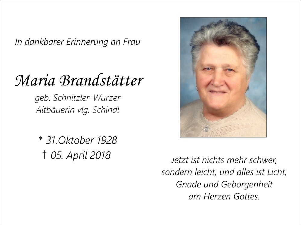 Brandstätter Maria, geb. Schnitzler-Wurzer