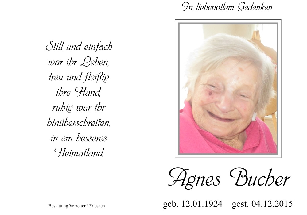 Bucher Agnes "Ofner Agnes" † 04.12.2015 « zurück