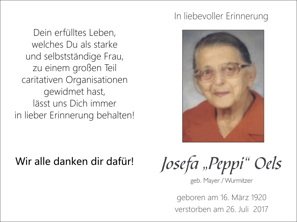 Oels Josefa geb. Mayer / Wurmitzer