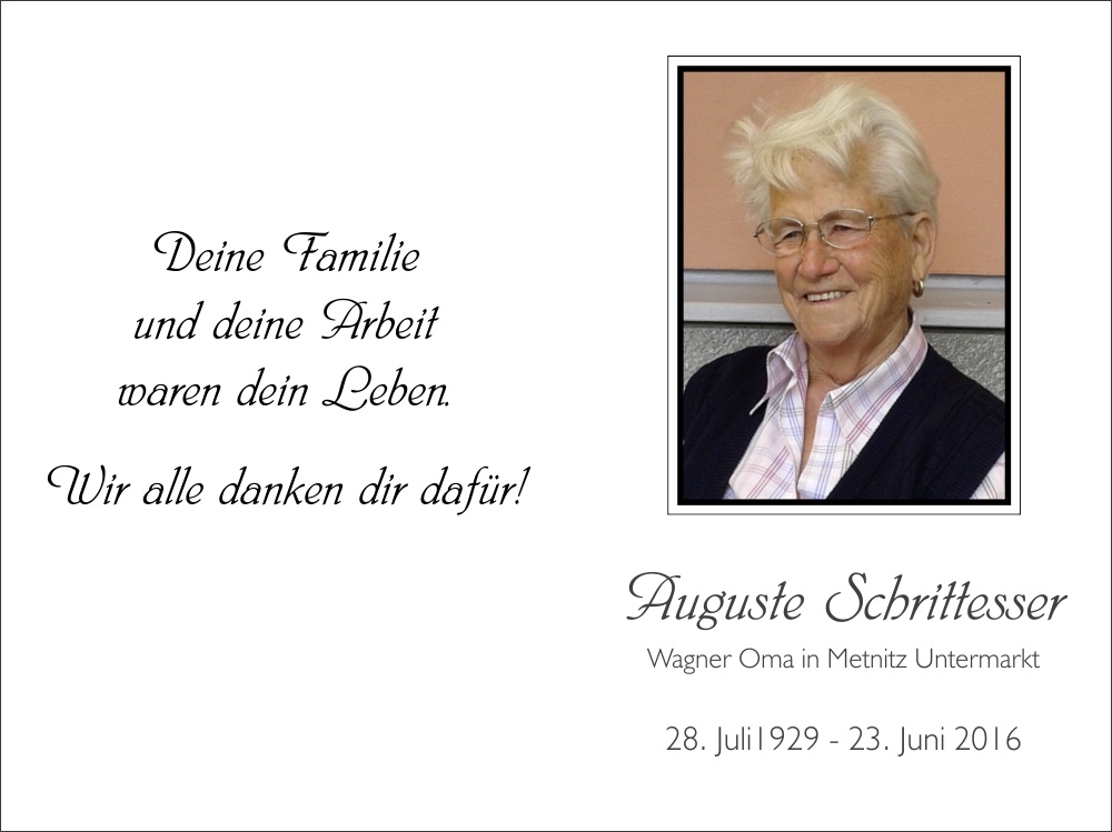 Schrittesser Auguste, Wagner Oma