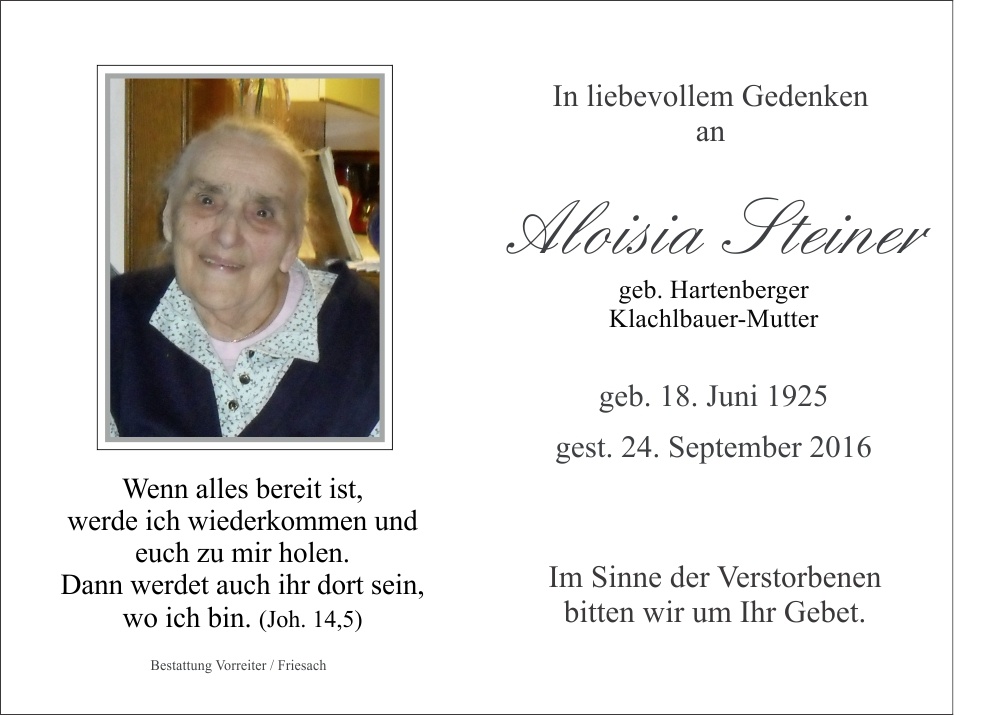 Steiner Aloisia, geb. Hartenberger, Klachlbauer-Mutter